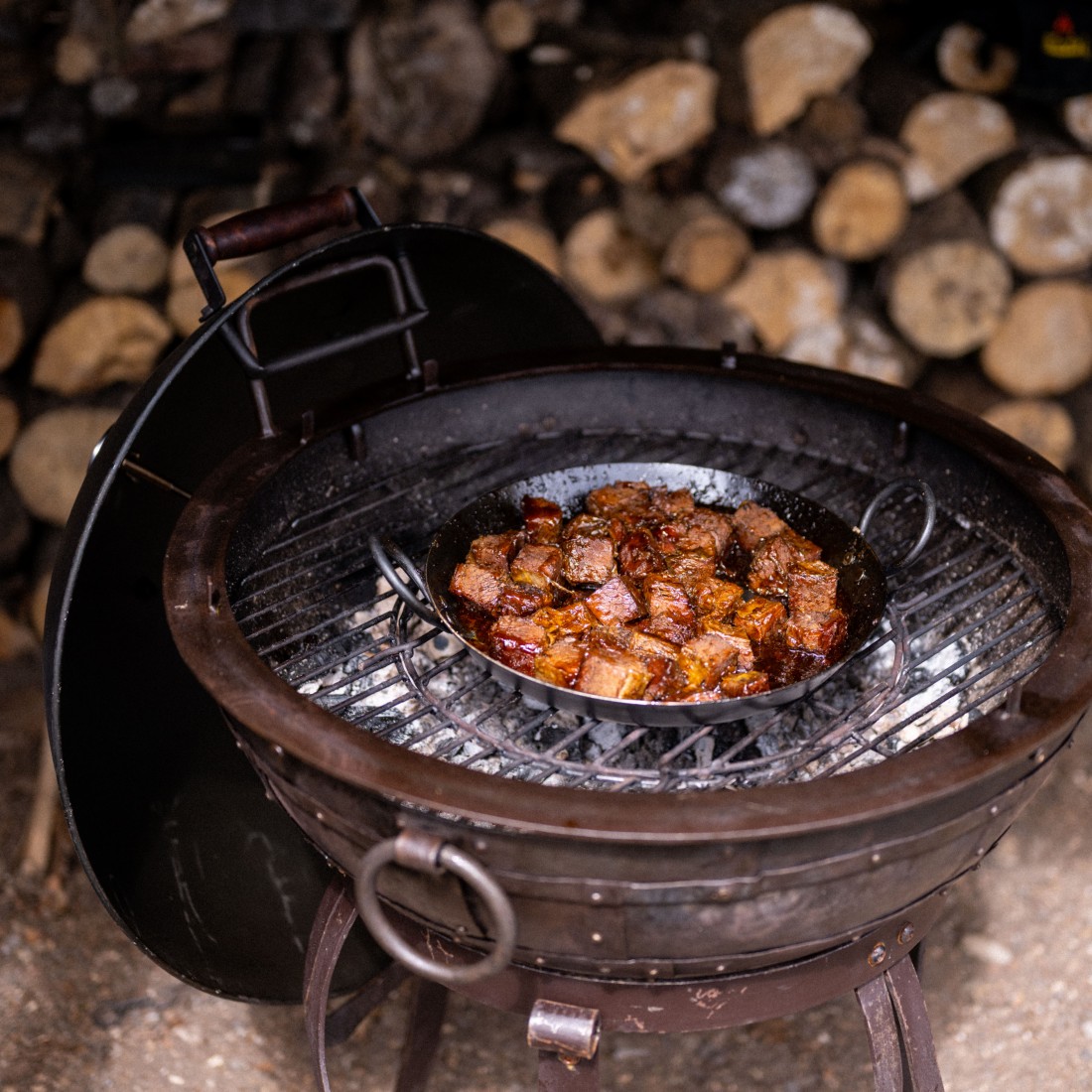 Enhance your outdoor cooking experience with the BBQ Smoker Lid. This accessory turns your fire pit into a functional smoker BBQ for perfect slow cooking, smoking meats and even roasting or baking your favourite dishes. The BBQ Lid is fitted with a temperature gauge and an adjustable vent for drawing the heat and smoke over the food. The supporting ring has a spacer to help with airflow and a rest to hold the Lid when checking food; it also locks into the Gothic High Stand to keep the Lid secure. Add flavour to your next BBQ using the Smoker Box under the Lid.