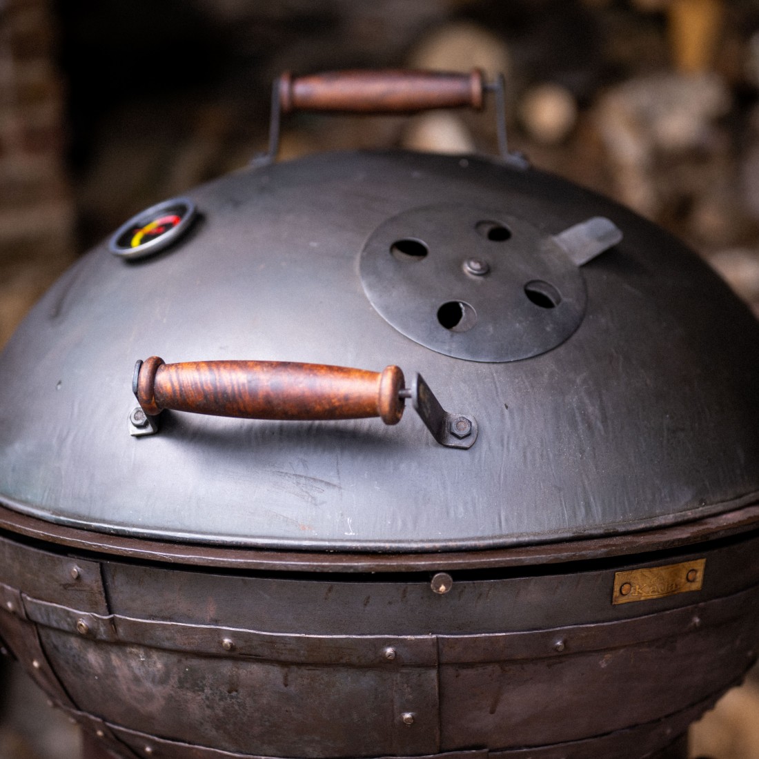 BBQ Smoker Lid available in 3 sizes.Handmade from durable mild steel, with a temperature gauge and adjustable air vent.Dia. 84cm (Exc. Handles) x H35cm (Inc. Handles)NB: the Kadai Lid is not compatible with any Original Kadai, Wilstone or Tula Fire PitPlease also note that the standard Kadai Lid does NOT fit the Firepit Table, however a bespoke alteration can be made upon request.